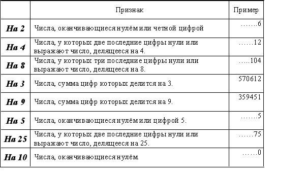 Ключевые слова: натуральное число, делимость чисел, признаки делимости